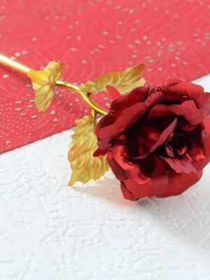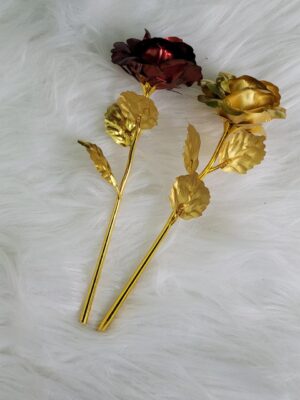 Want to impress a girl this valentines day or are confused about what to purchase for your partner? Buy an Artificial Gold Plated Red Rose to make her feel special. The rose is made of metal.