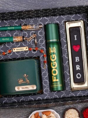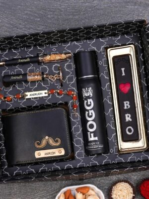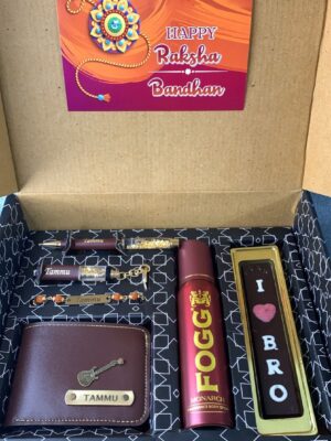 Raksha Bandhan is all about the adorable bond that a brother and a sister share and to make this day more special, surprise your brother with this delightful Rakhi combo that consists of a beautiful, customized Wallet, a Rakhi and delicious chocolate.