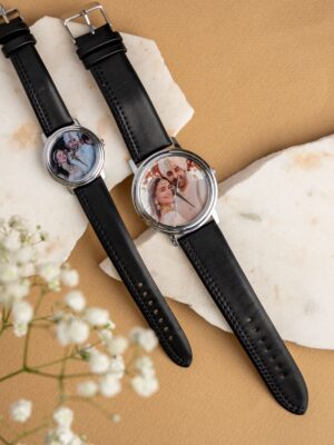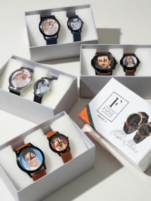 This special Bhaiya Bhabhi couple watch set includes 1 watch for men and 1 watch for women. Both watches come with a box, 4 colors to choose from, and a scope of photo customized inside the watch.