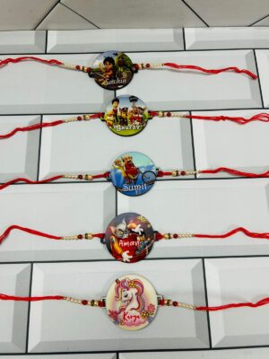 Beautiful, Stylish Acyclic Rakhi for your brother / Bhaiya /Bhai. This high-quality printed Rakhi would last long, you can store these as memorable after the occasion. Made from durable wood these Rakhi’s threads provide the ideal aesthetic look, making the Rakhi special for your brother High-quality.