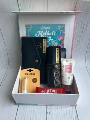 That sounds like a lovely Mother’s Day gift hamper! The combination of a premium box, a Best Mom cutout on top, a Latte Tall mug (available in 4 colors), a Dairy Milk Silk chocolate bar, a panda fancy keychain, and a Mother’s Day card makes for a thoughtful and sweet gift.