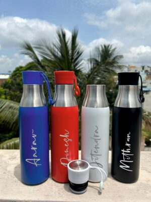 Health is wealth, confusion in taking away others’ bottles. Here is the customized metal bottle that quenches your thirst, and another option is to get personalized with a name on it & find your bottle quickly from others’. Drinking water from your own brand is something special. Make your things isolated so that it always finds its way back to you. Gift this to your child/mate/dear one, they never skip drinking water as it is specially designed and customized.