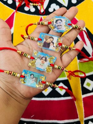 Beautiful, Stylish Acyclic Rakhi for your brother / Bhaiya /Bhai. This high-quality printed Rakhi would last long, you can store these as memorable after the occasion. Made from durable wood these Rakhi’s threads provide the ideal aesthetic look, making the Rakhi special for your brother High-quality.