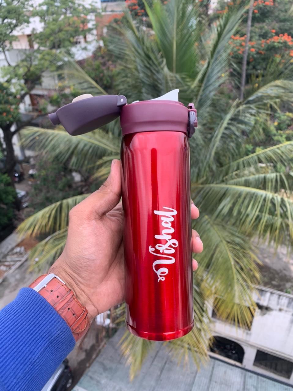 Help your special someone stay hydrated on the go. Gift them this stainless-steel water bottle with a screw-on lid that has an LED touch display that shows the temperature of the beverage inside. It comes with a stainless-steel strainer to infuse the water. Personalize with a name.